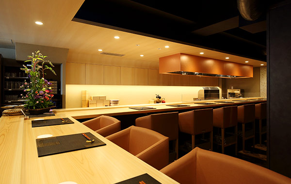 (しゅゆうあんこてつ)」は、カウンター席のみの居心地の良い和食店。付かず離れずのちょうど良い距離感で、旬の料理と厳選した銘酒をご満喫いただけます。落ち着いた和の空間の中、調理風景を間近で愉しめる臨場感も魅力の一つ。